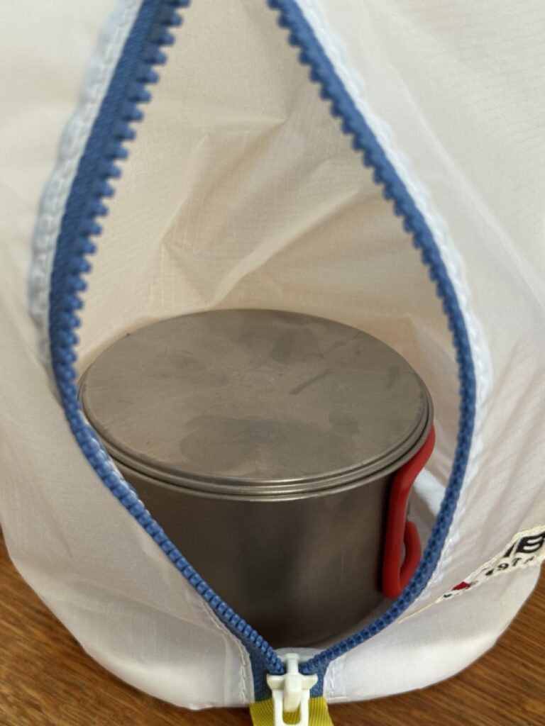 これまでスタッキングしたクッカーをガス缶と共にザックにそのままいれていたのですが、取り出したり、使った後に入れておく際にバラバラなのと探す手間を効率化したいと思い、何が良いアイテムがないか探していたところJIB(ジブ)のプレスバッグをチョイス。